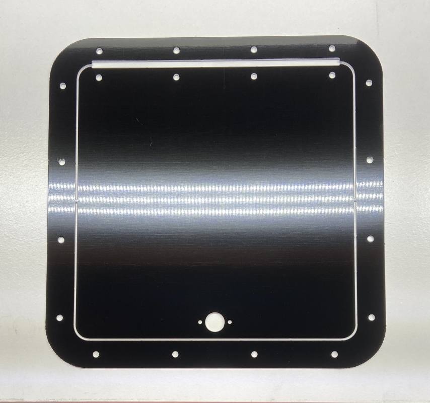 Description:10" long by 10" wide gloss black aluminum access door and frame. It comes with dzus springs and captivated dzus buttons as well as the hinge. This access door and frame come with a protective film for installation.