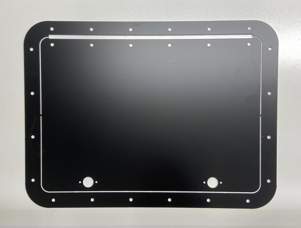 Description:14" long by 10" wide flat black aluminum access door and frame. It comes with dzus springs and captivated dzus buttons as well as the hinge. This access door and frame come with a protective film for installation.