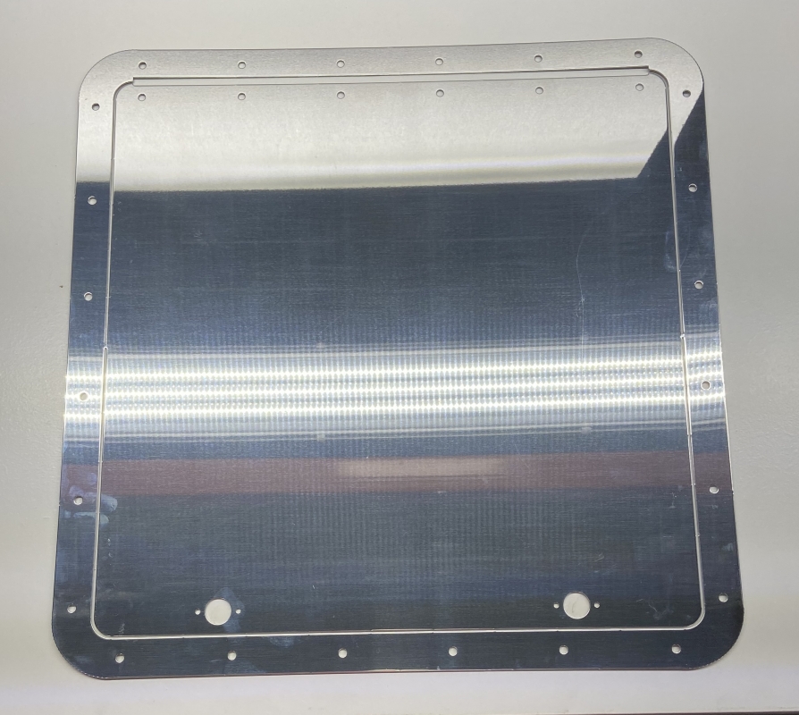 Description:16" long by 16" wide polished aluminum access door and frame. It comes with dzus springs and captivated dzus buttons as well as the hinge. This access door and frame come with a protective film for installation.