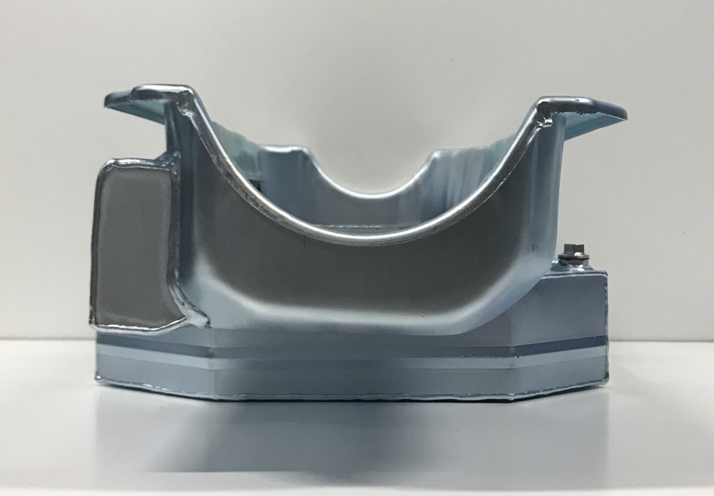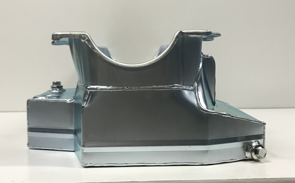 This oil pan is designed around the Chevrolet Camaro front stub with the engine set back.