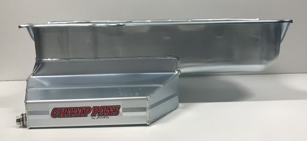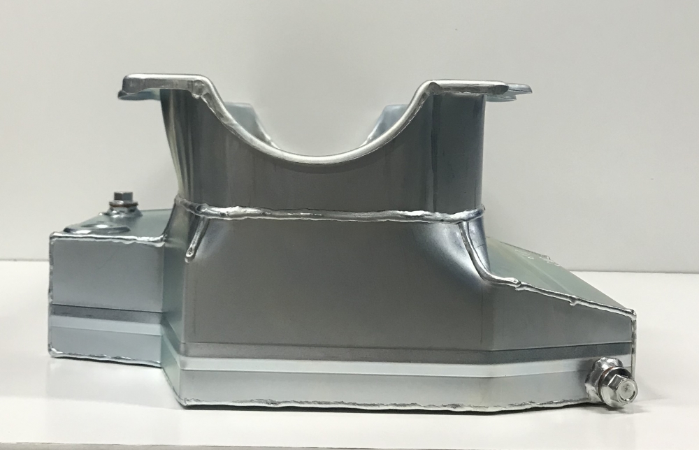 This oil pan is designed around the Chevrolet Camaro front stub with the engine set back.