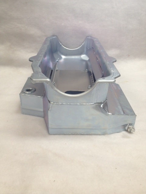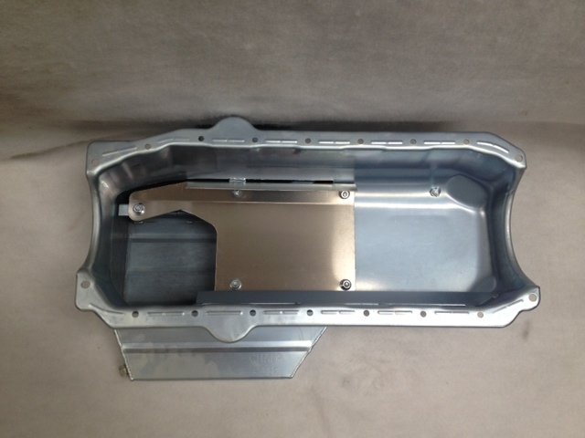 This oil pan is designed around the Chevrolet Camaro front stub with the engine set back.