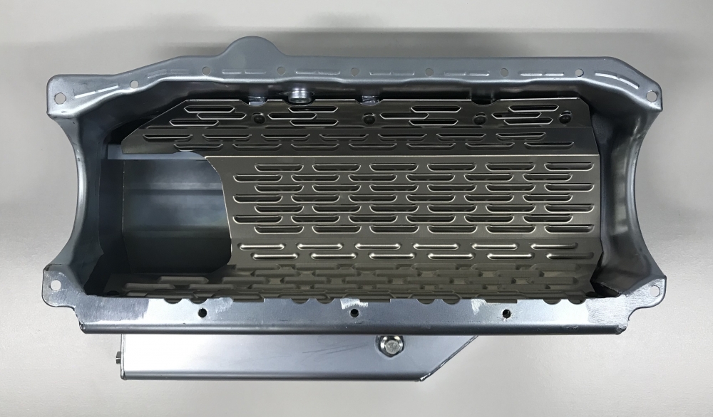 This oil pan was designed for race cars that do not have a cross member in the way.
