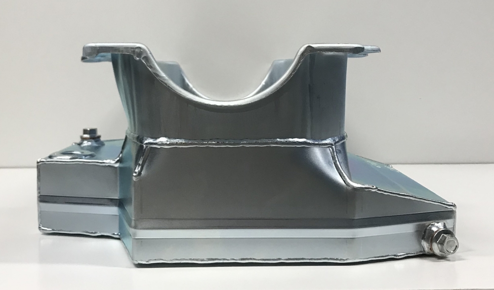 This oil pan is designed around the Chevrolet Camaro front stub with the engine set back.