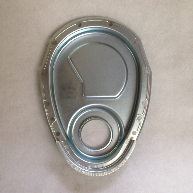Description:GM-style timing cover in silver for the Small Block Chevrolet years 1975 and newer. This timing cover features: