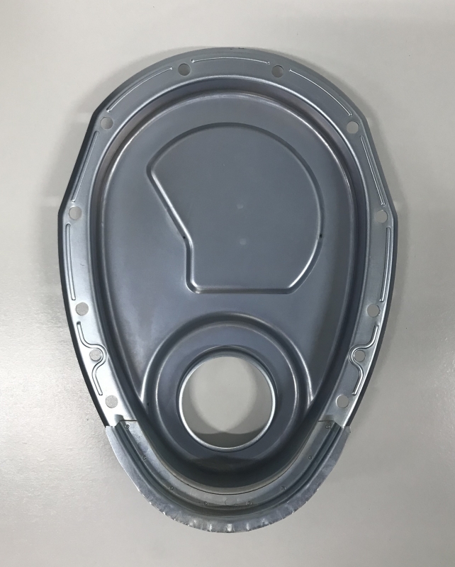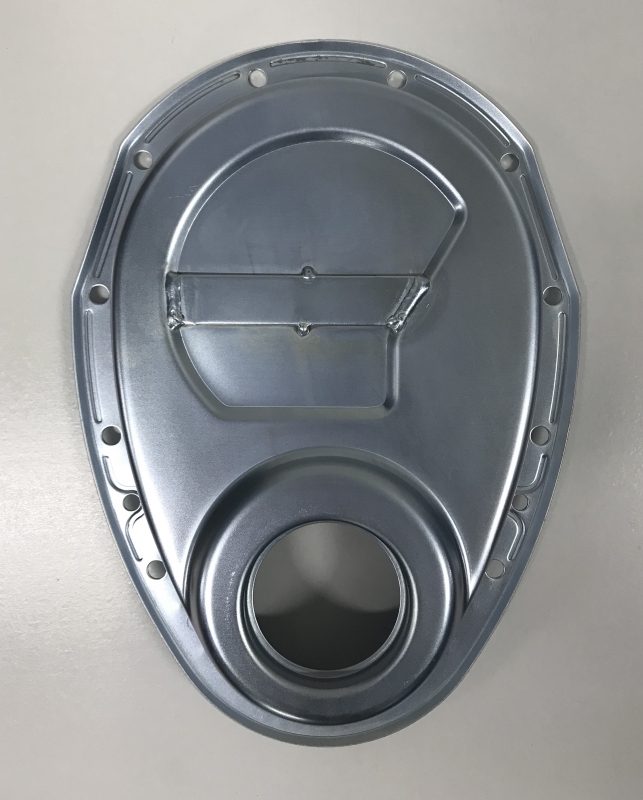 Description:GM-style timing cover in silver for the Small Block Chevrolet years 1975 and newer. This timing cover features: