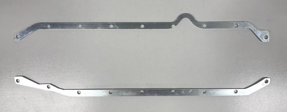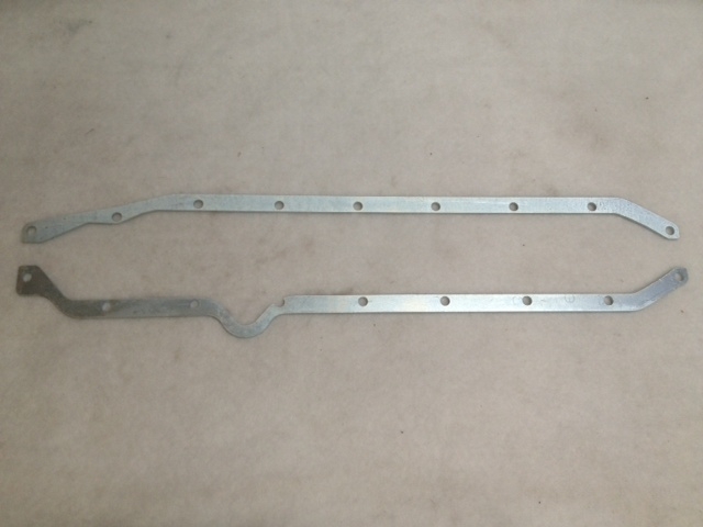 Description:Pan rail girdle set for the Small Block Chevrolet years 1986-2003 with the one piece rear main seal engines. This pan rail girdle set is designed to spread the torque force over a larger area to help seal the oil pan to the block, regardless of the gasket you use. It is .125" thick and conforms to our racing core oil pans; however, it will also fit stock-appearing core oil pans.