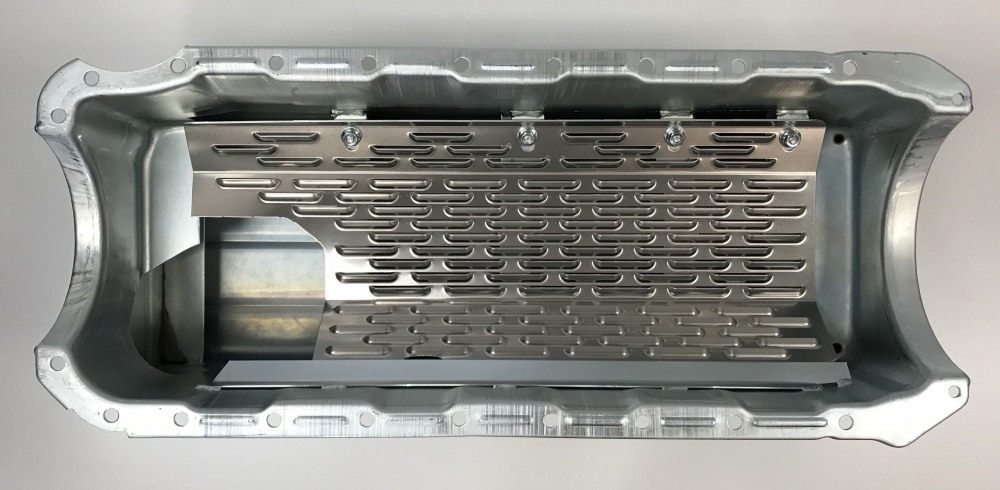 - a front and back splash plate to keep the oil from climbing up the back of the oil pan