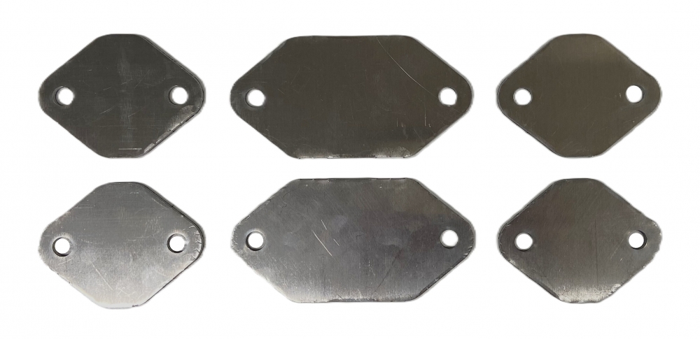 Description:Aluminum six piece exhaust block off plates for the Small Block Chevrolet. These exhaust block off plates are for security when transporting or storing engines.