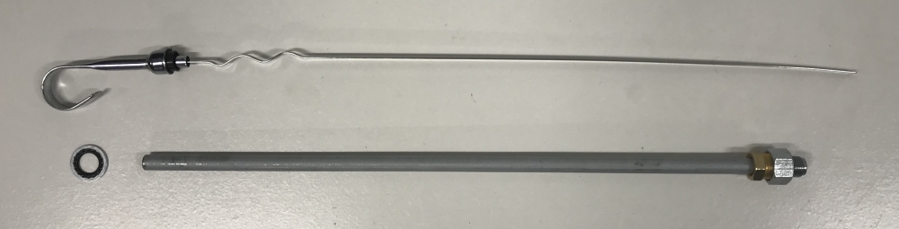 Description:Dipstick assembly for the Small Block Chevrolet, Small Block Ford and Small Block Mopar oil pans.