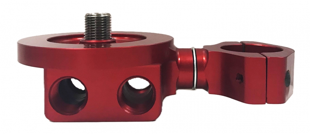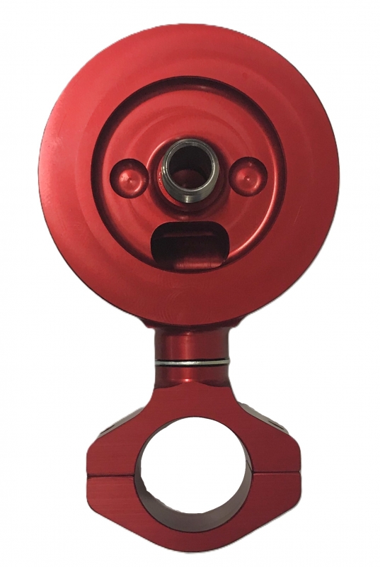 Description:Remote fuel filter mount that is anodized red. In and out ports are 1/2" NPT.