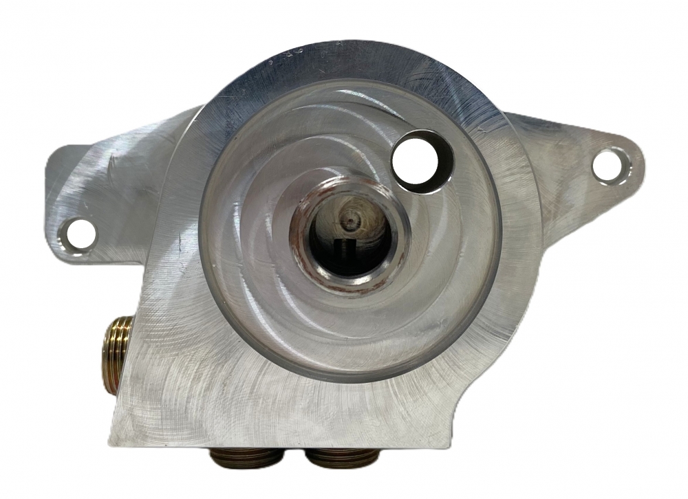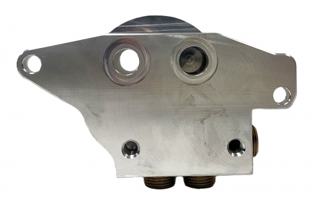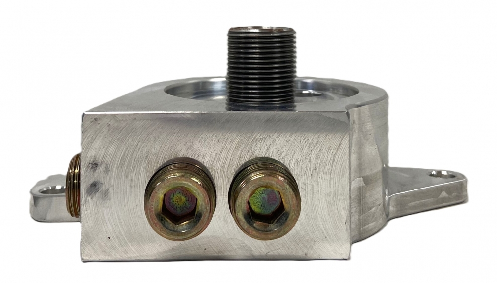 Description:Billet aluminum oil filter adapter that is cross drilled and tapped for LS1 oil pans. Using this adapters eliminates the 7/8" cross over plate (LS1001-2) which allows for more clearance between exhaust headers and adapter.