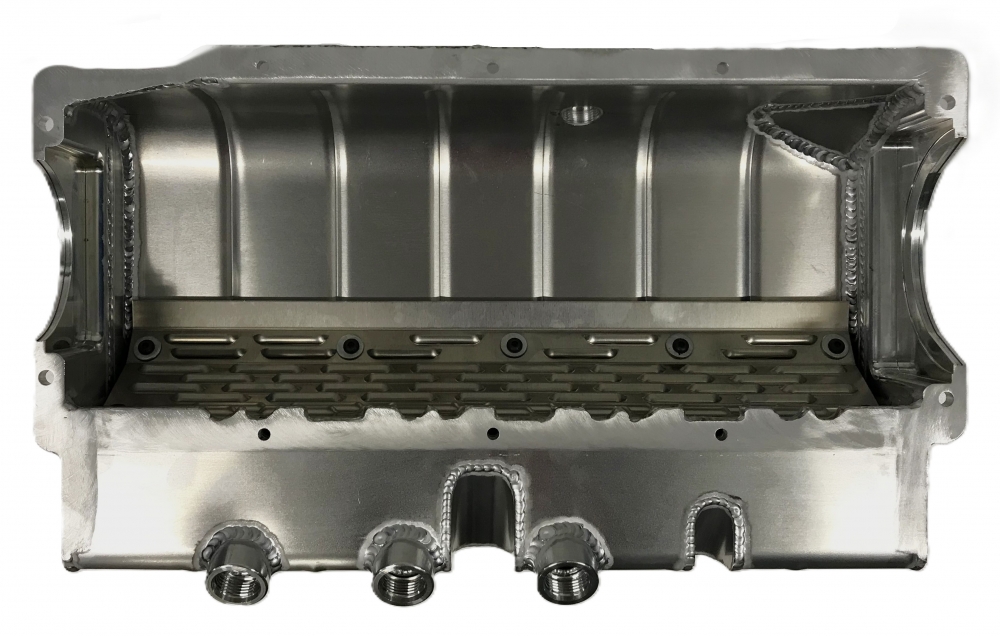 Description:This aluminum dry sump oil pan is for the Small Block Chevrolet years 1957-1985 with the two piece rear main seal engines. This oil pan features: