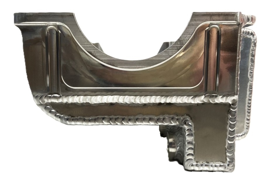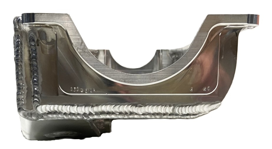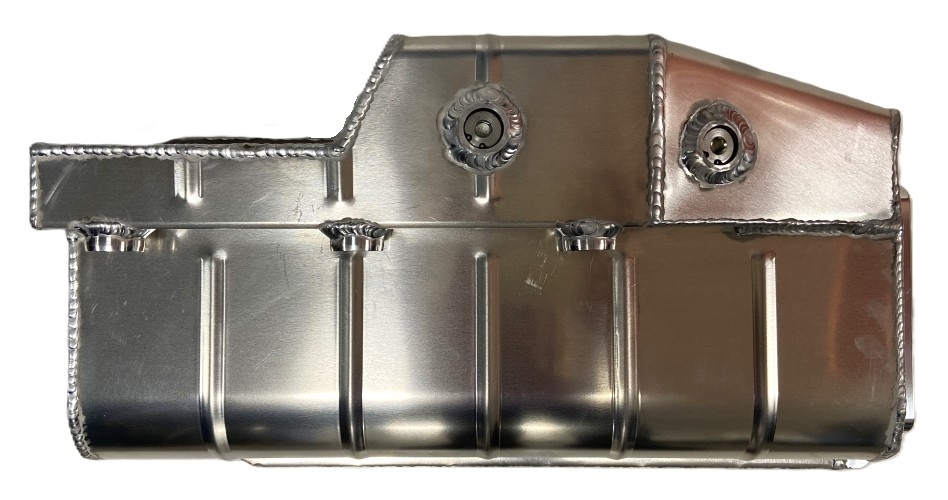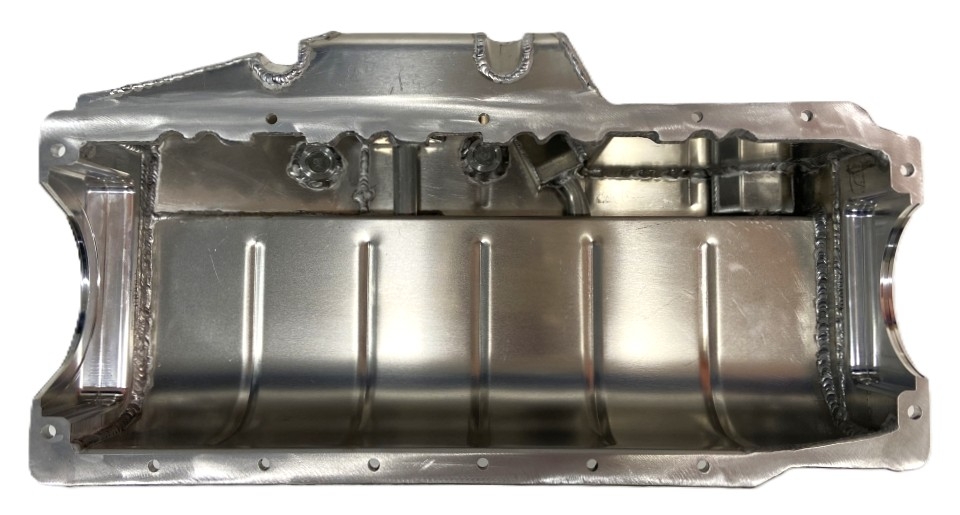 This aluminum dry sump oil pan is for the Small Block Chevrolet years 1957-1985 with the two piece rear main seal engines. This oil pan features: