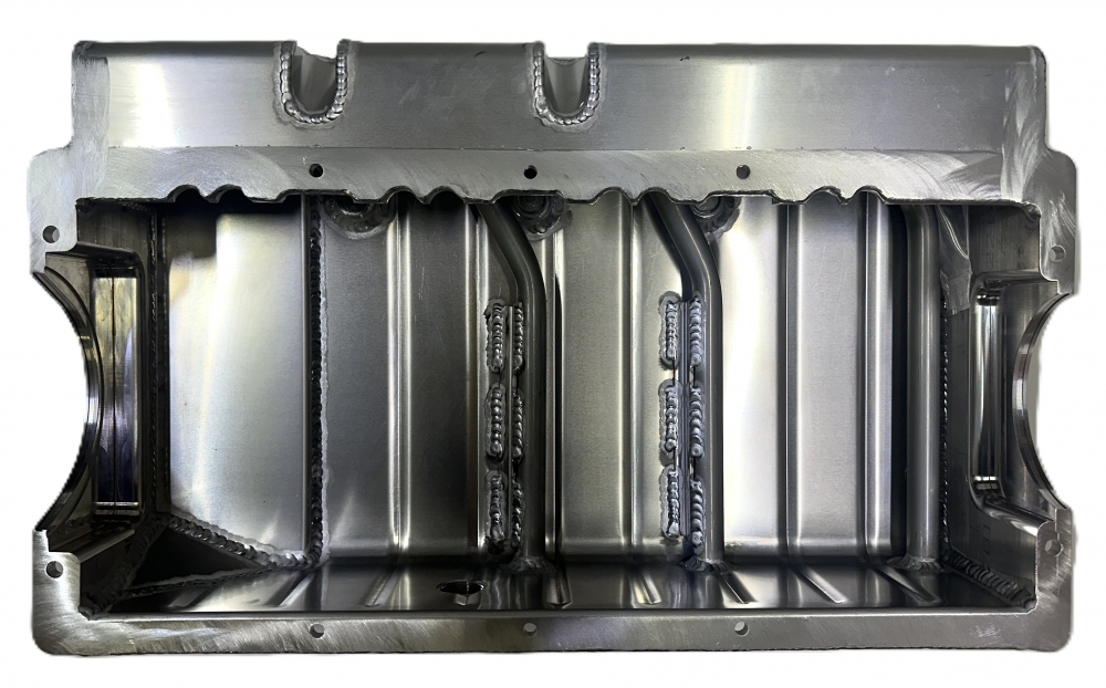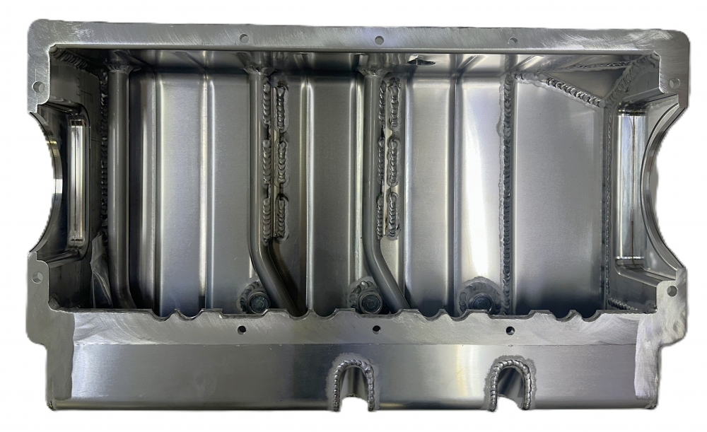Description:This aluminum dry sump oil pan is for the Dart Small Block Chevrolet engines with the spread rails. This oil pan features:
