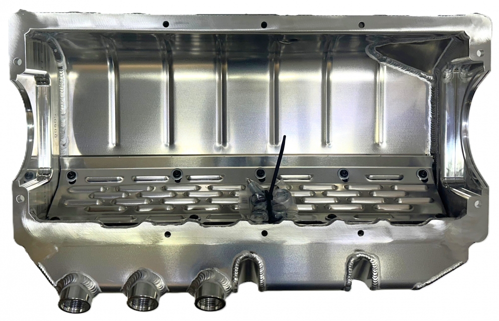 Description:This aluminum dry sump oil pan is for the Dart Small Block Chevrolet engines with the spread rails. This oil pan features: