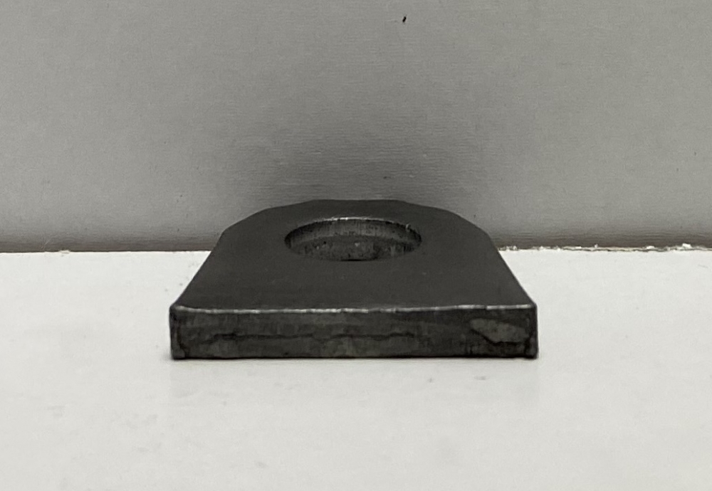 Description:Steel 1 1/4" long by 0.188" thick weld on bracket with 1/2" hole.